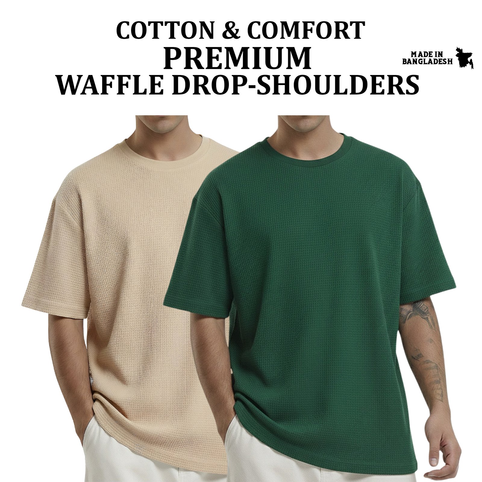 Experience comfort and style with our waffle knit fabric, designed with a unique honeycomb texture that enhances both function and feel. This breathable structure allows for improved airflow, keeping you cool even in warmer weather.